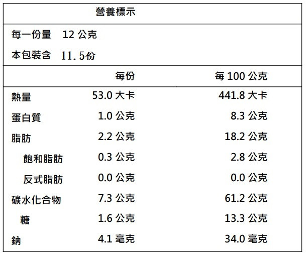 淨重:138克±6克(12片)