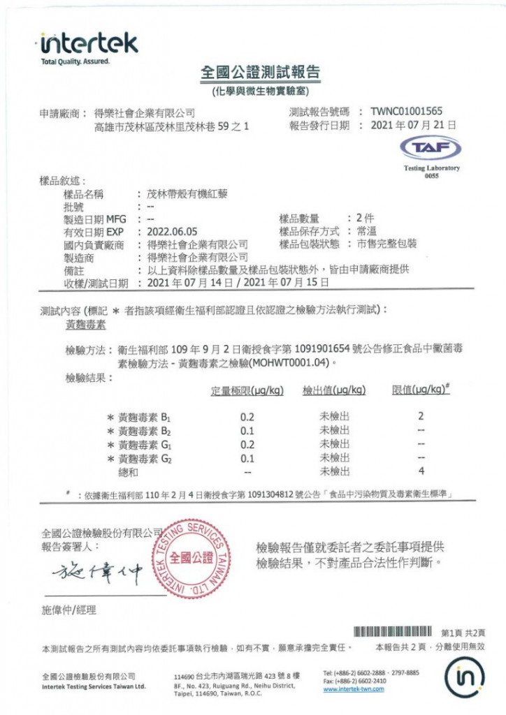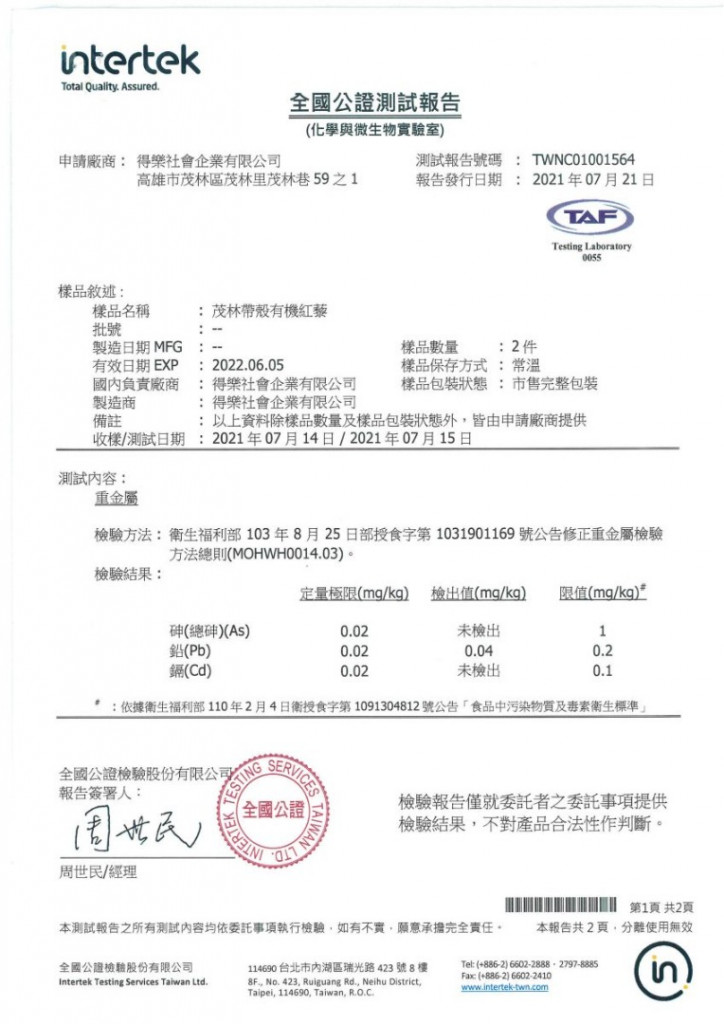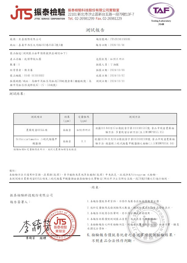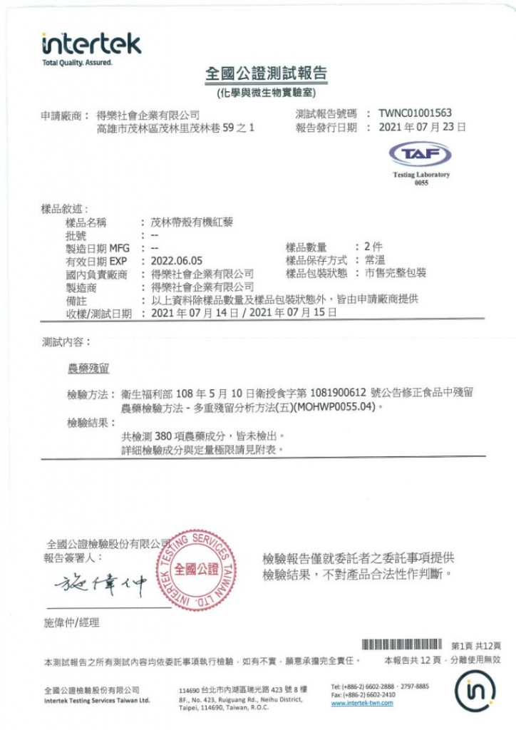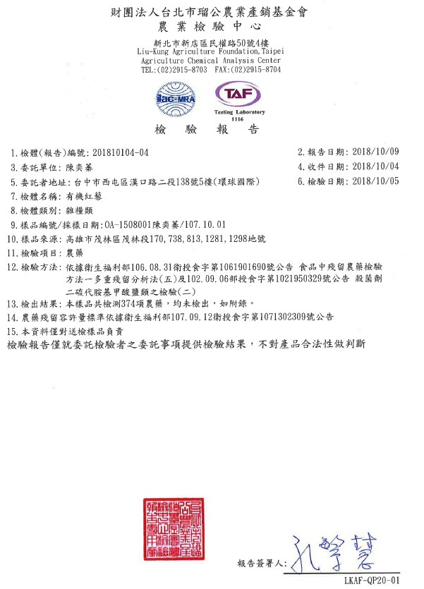 1.「有機」認証,有效期1年。