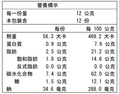 麵粉(小麥麵粉、小麥澱粉)、白油(棕櫚油、抗氧化劑(混合濃縮生育醇))、水、糖、黑芝麻、紅藜、鹽