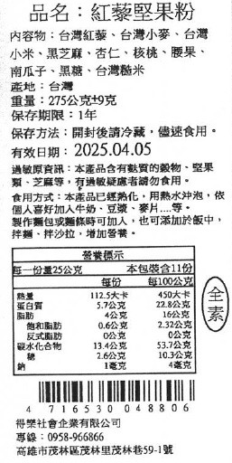 44.紅藜堅果粉275克/袋