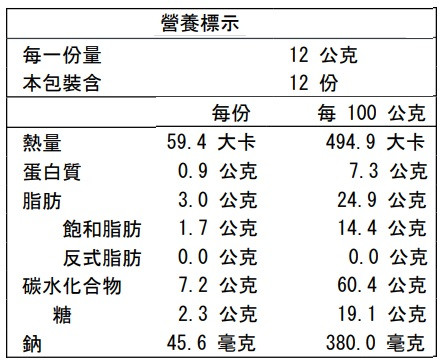 麵粉、小麥澱粉、白油(棕櫚油、抗氧化劑(混合濃縮生育醇))、水、糖、蛋黃、紅藜、鹽