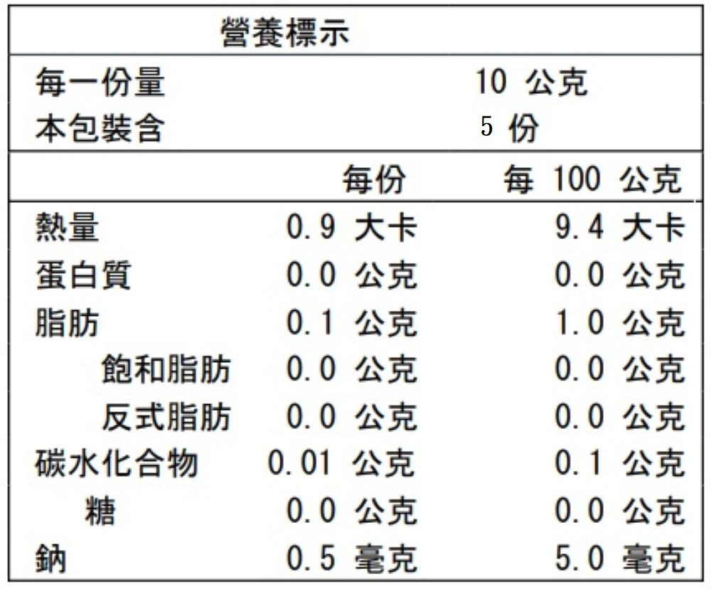 淨重:50克±2.0克(10克±0.4克×5鋁鉑包)/袋裝