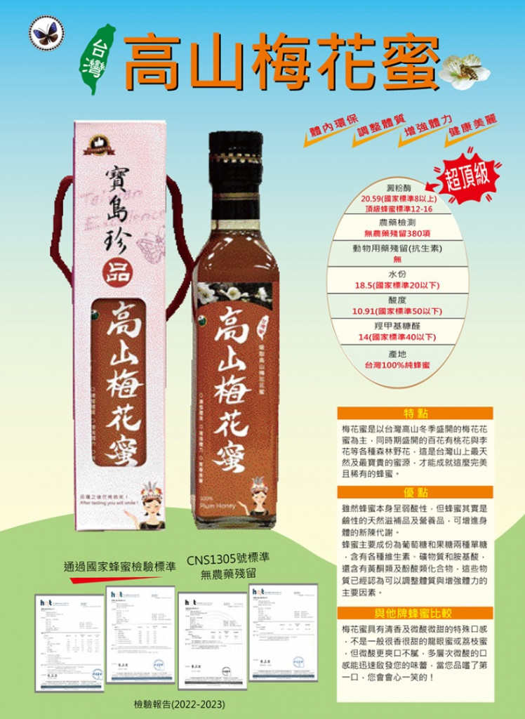 以台灣高山冬季盛開的梅花花蜜為主製作