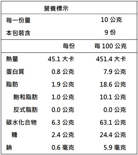 紅薏仁、焦糖、黑糖、棕櫚油(非氫化植物油)、樹薯澱粉、鹽
