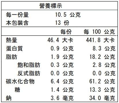 淨重:137克±6克(13片)