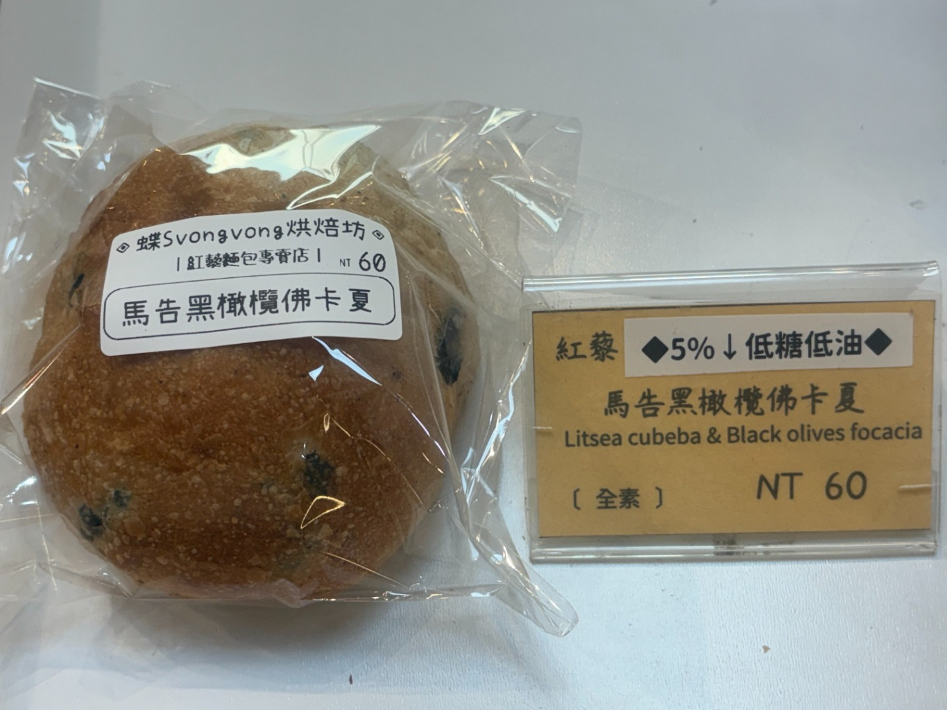麵粉(高筋、低筋)、馬告、酵母、紅藜、橄欖油、黑橄欖、迷迭香、水、鹽、糖