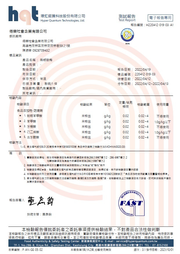 本產品無農藥、無防腐劑、無糖精、請安心食用